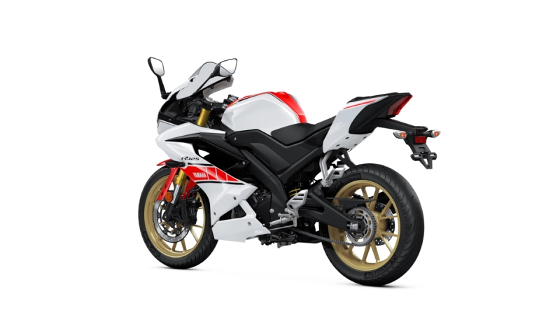 La nueva YZF R125 60th Aniversario con motor EU5 de 125 cc de alta tecnología, una ligera parte ciclo y carrocería de competición inspirada en MotoGP®, la dinámica superdeportiva R125 ofrece un sorprendente rendimiento y un pilotaje de precisión, lo que la convierte en la alternativa más atractiva en la categoría de 125 cc. Con el histórico diseño en blanco y rojo para conmemorar el 60º aniversario de Yamaha en la competición de GGPP, la nueva y espectacular R125 GP 60 Aniversario incorpora el diseño de las motos de competición más emblemáticas a la categoría de 125 cc.